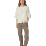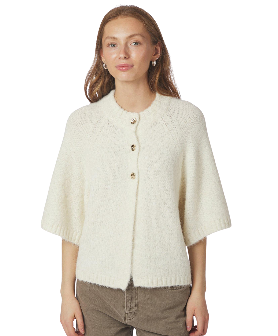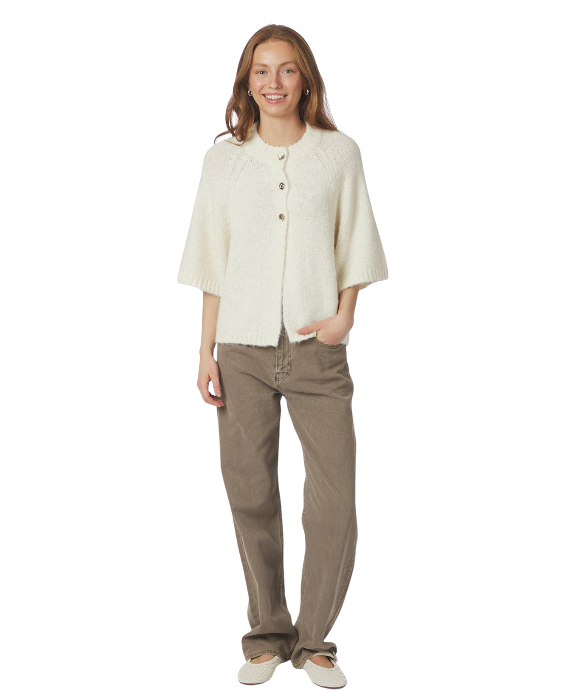 Dit boxy gebreide vest is uitgevoerd in een zachte, fluffy kwaliteit en heeft een moderne, comfortabele uitstraling. De wijde mouwen en de decoratieve knopen aan de voorkant geven het vest een speelse en stijlvolle touch. Perfect om te dragen over een top of blouse voor jou favoriete look.