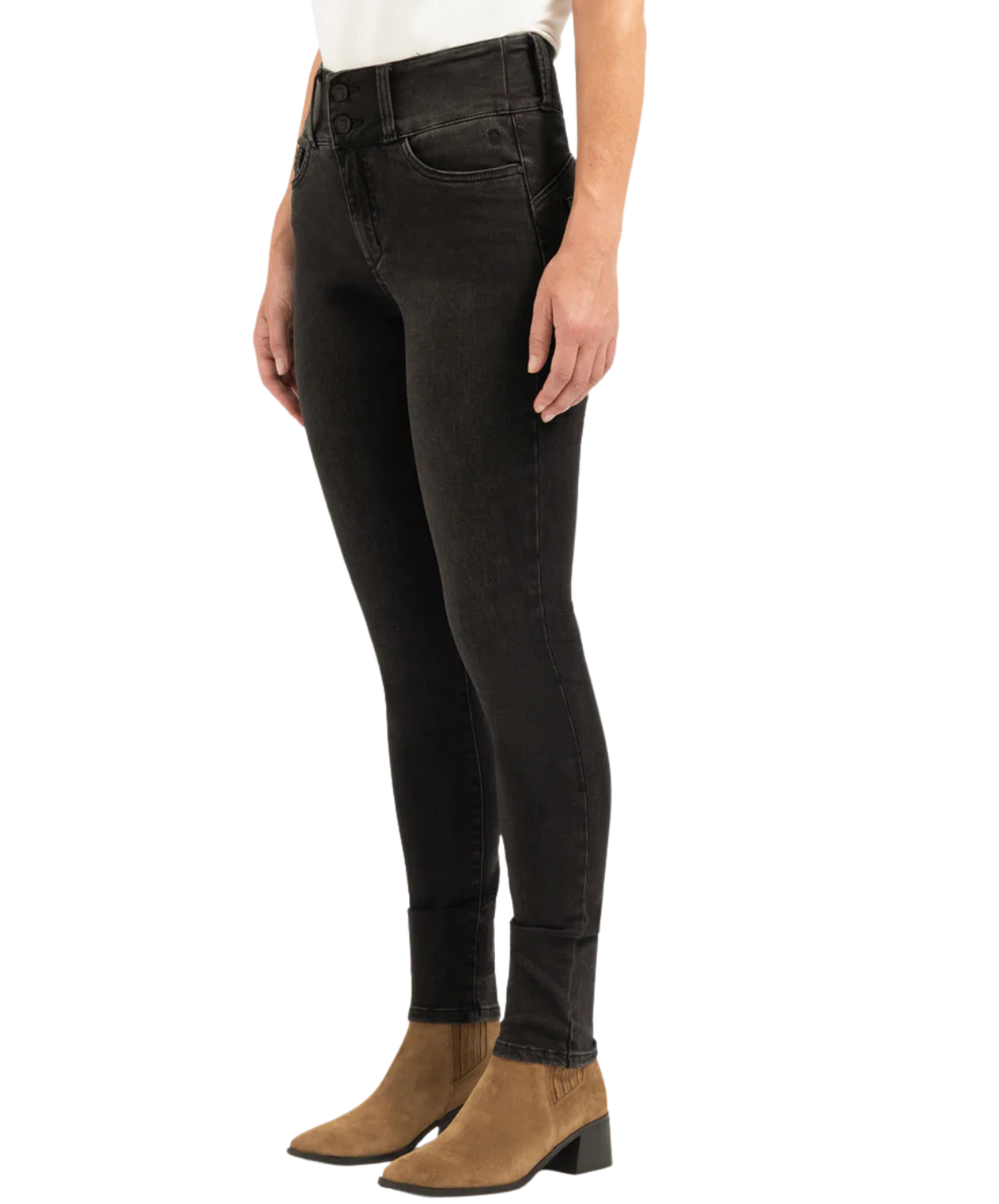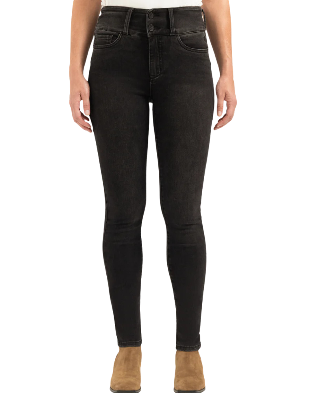 De Bodine Fit is een high-waist slim fit model. Er is gekozen voor een brede tailleband met een dubbele knoopsluiting. De combinatie van een ultieme pasvorm en comfortabele stof zorgen ervoor dat deze broek zich naar je lichaam vormt. Perfect dus! Of je deze jeans nu draagt met een hoge laars of met een platte sneaker, dit design vormt de basis voor jouw dagelijkse look.