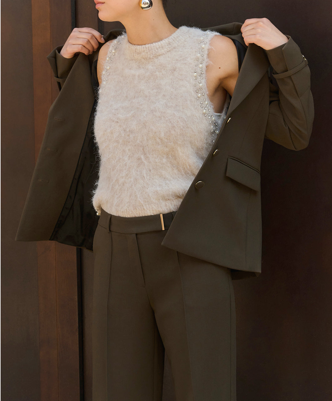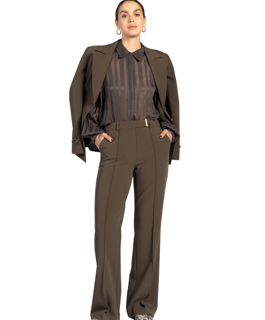 De Chantalle pantalon heeft een elegant model met klassieke persnaad over het voorpand van de wijde broekspijpen. Dit model heeft een klassiek weggewerkte sluiting die hoog in de heupen valt voor een mooi silhouet. Verder is deze broek voorzien van riemlussen, insteekzakken, twee achterzakken en een blinde zoom.