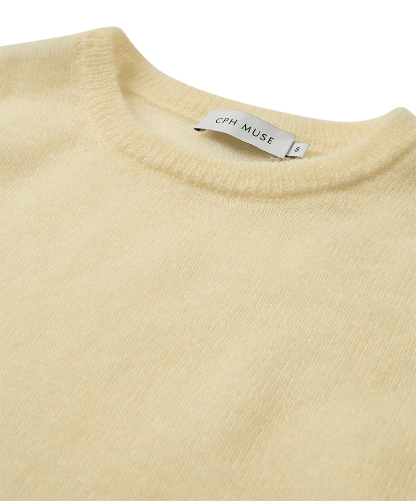 De CMKAMMA pullover is een korte, elegante knit met een ontspannen, vrouwelijke pasvorm. Gemaakt van een premium fine-knit mix van wol, mohair en polyamide, voelt de pullover heerlijk zacht aan. De brede halflange mouwen met drop shoulders benadrukken de losse fit, terwijl de ribdetails bij de hals een nette finishing touch geven. Perfect om solo te dragen of te combineren met een high-waist broek of rok.