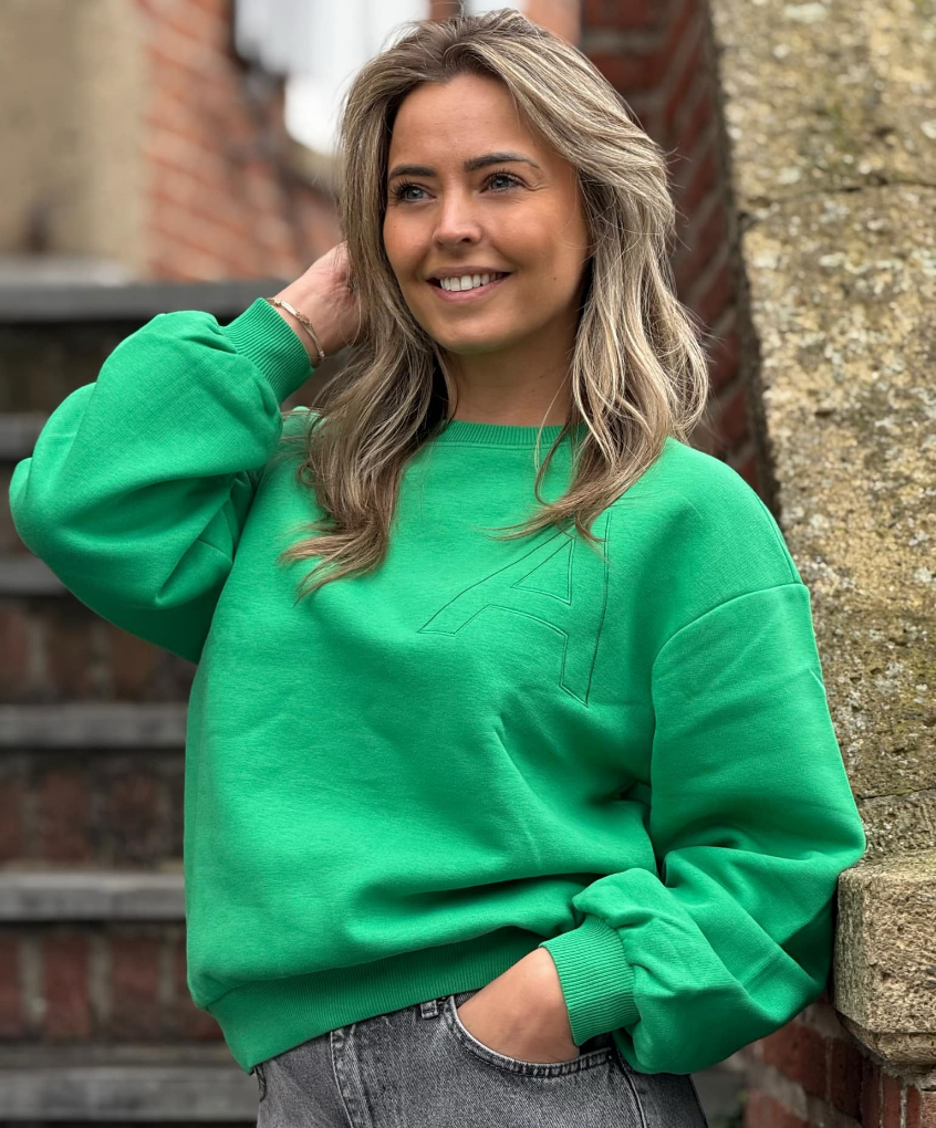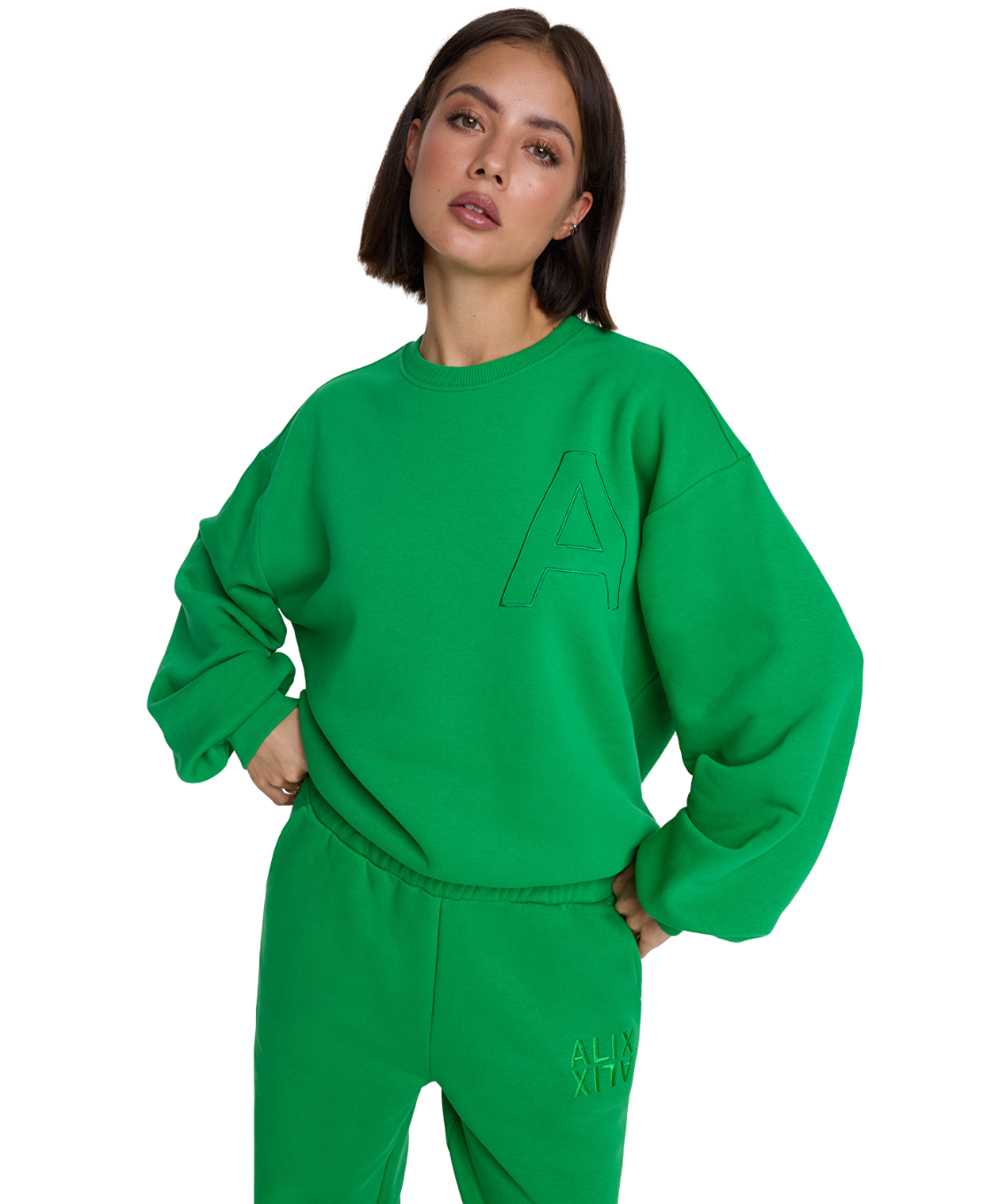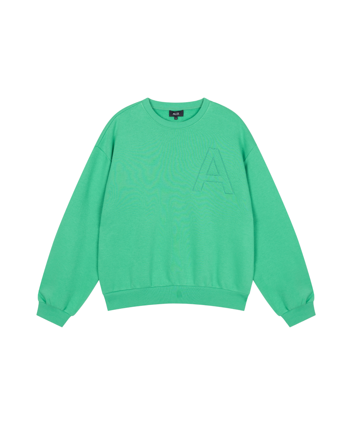 Deze sweater van Alix The Label is gemaakt van een zachte sweat kwaliteit en combineert comfort met een subtiel statement. Het ontwerp is voorzien van een elegante ‘A’ borduring op de borst en de tekst ‘THE LABEL’ op de mouw, wat een moderne en casual uitstraling geeft.