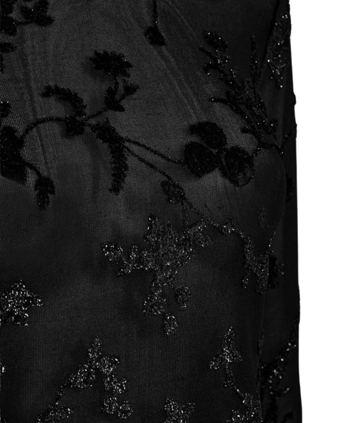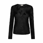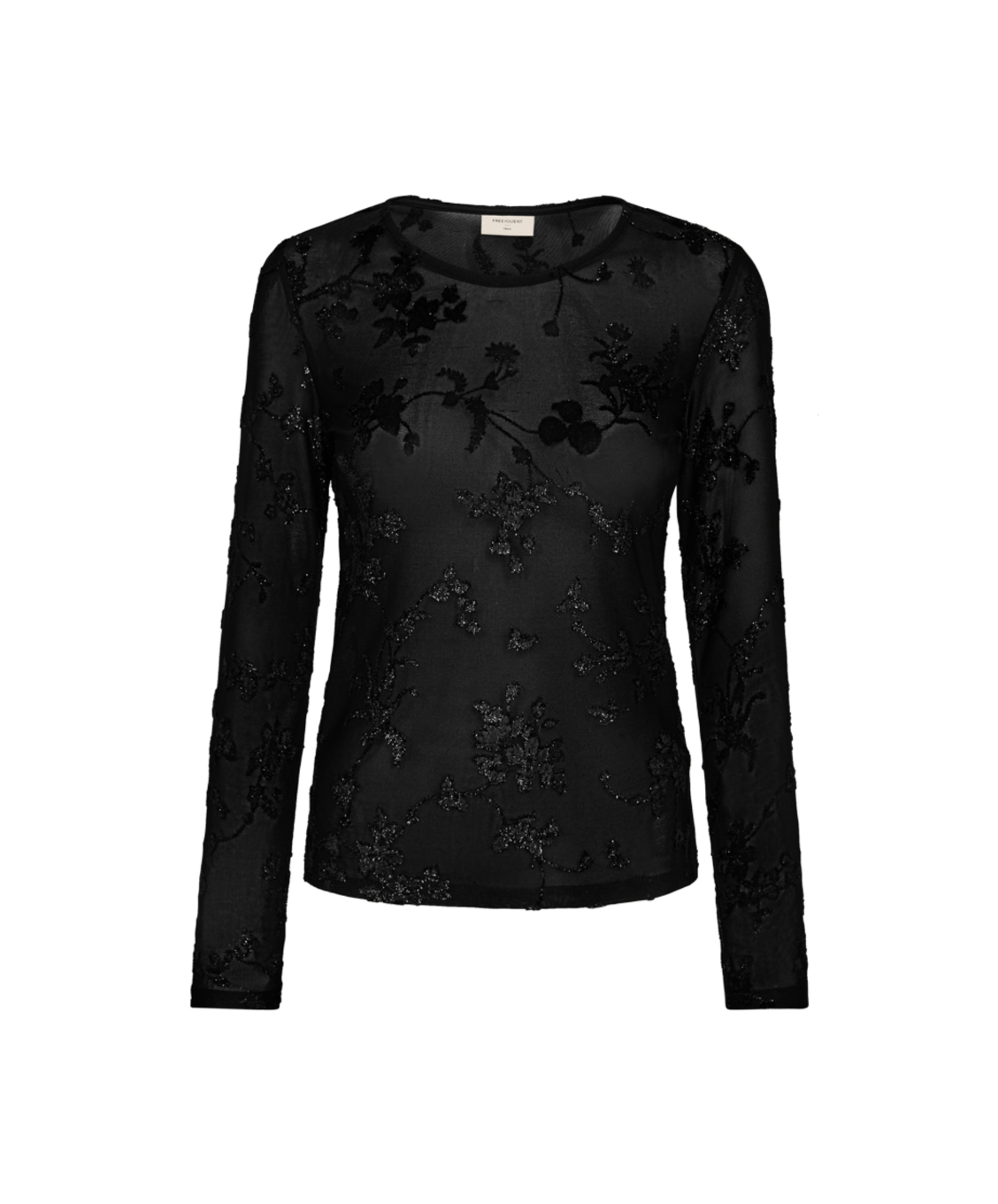 Deze Freequent top is gemaakt van een transparant en rekbaar mesh materiaal met een subtiel bloemenpatroon en glansfinish. Het strakke model met lange mouwen en ronde halslijn geeft een stijlvolle en vrouwelijke uitstraling. Perfect te combineren met een topje eronder voor een chique look.