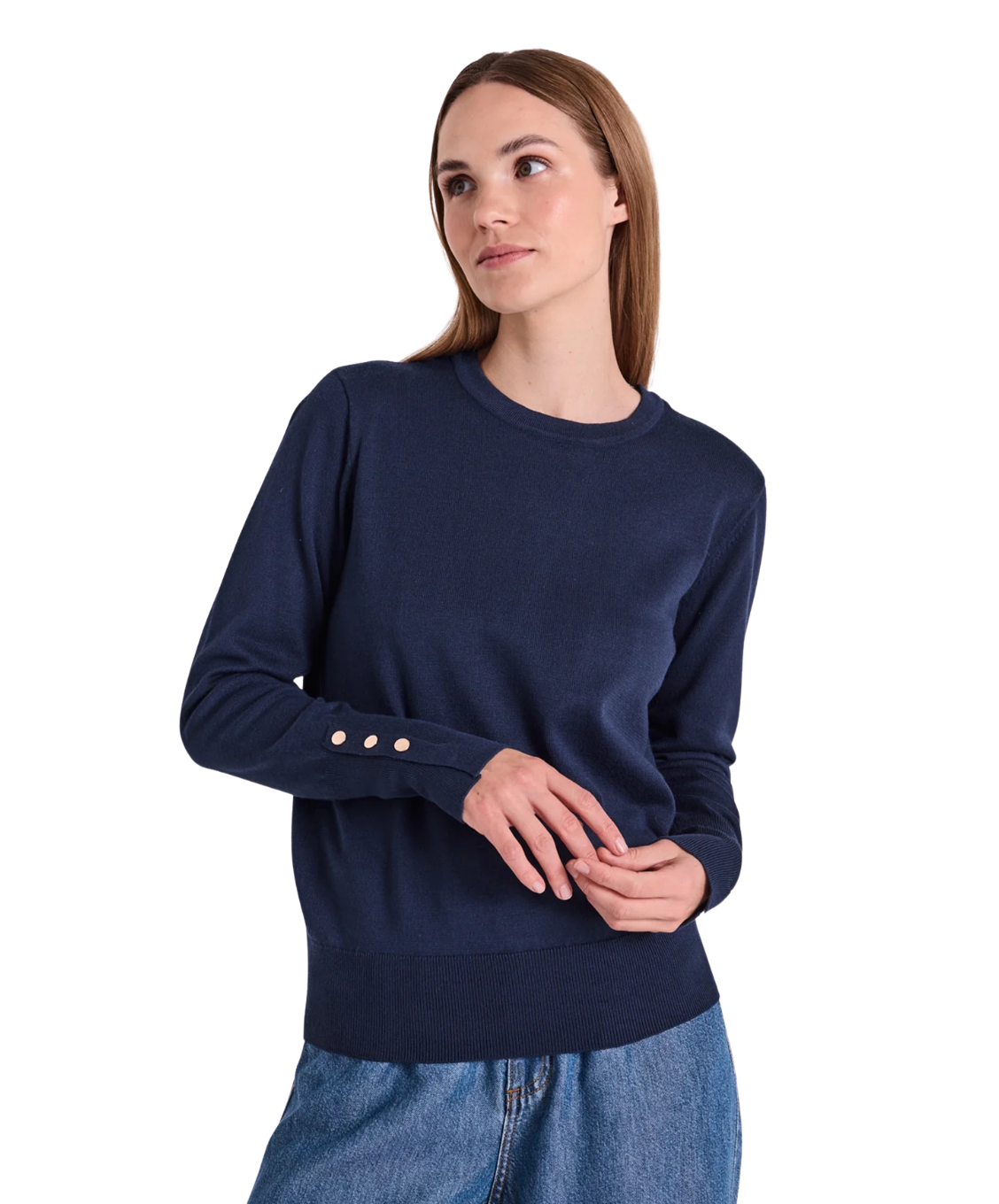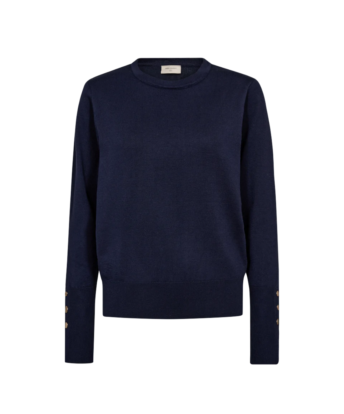 Een zachte fijngebreide pullover van Freequent met een eenvoudige, tijdloze uitstraling. Het model heeft een ronde hals, subtiele ribboorden en een regular fit voor een comfortabele pasvorm. De lange mouwen met een split en knoopdetail geven deze basic knit een stijlvolle, vrouwelijke touch.