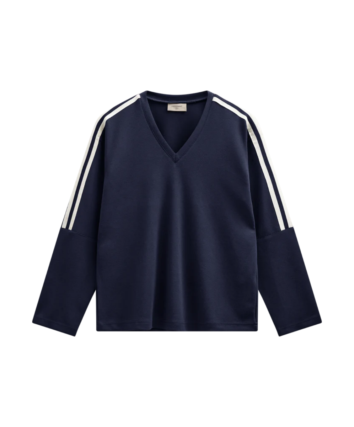 Deze trui van Freequent is gemaakt van een zachte, comfortabele stof en heeft een casual uitstraling. De V-hals en subtiele tape- en naaddetails op de mouwen geven het ontwerp een moderne, verfijnde touch. Dankzij de ontspannen pasvorm is deze trui perfect voor zowel alledaagse looks als meer geklede combinaties.