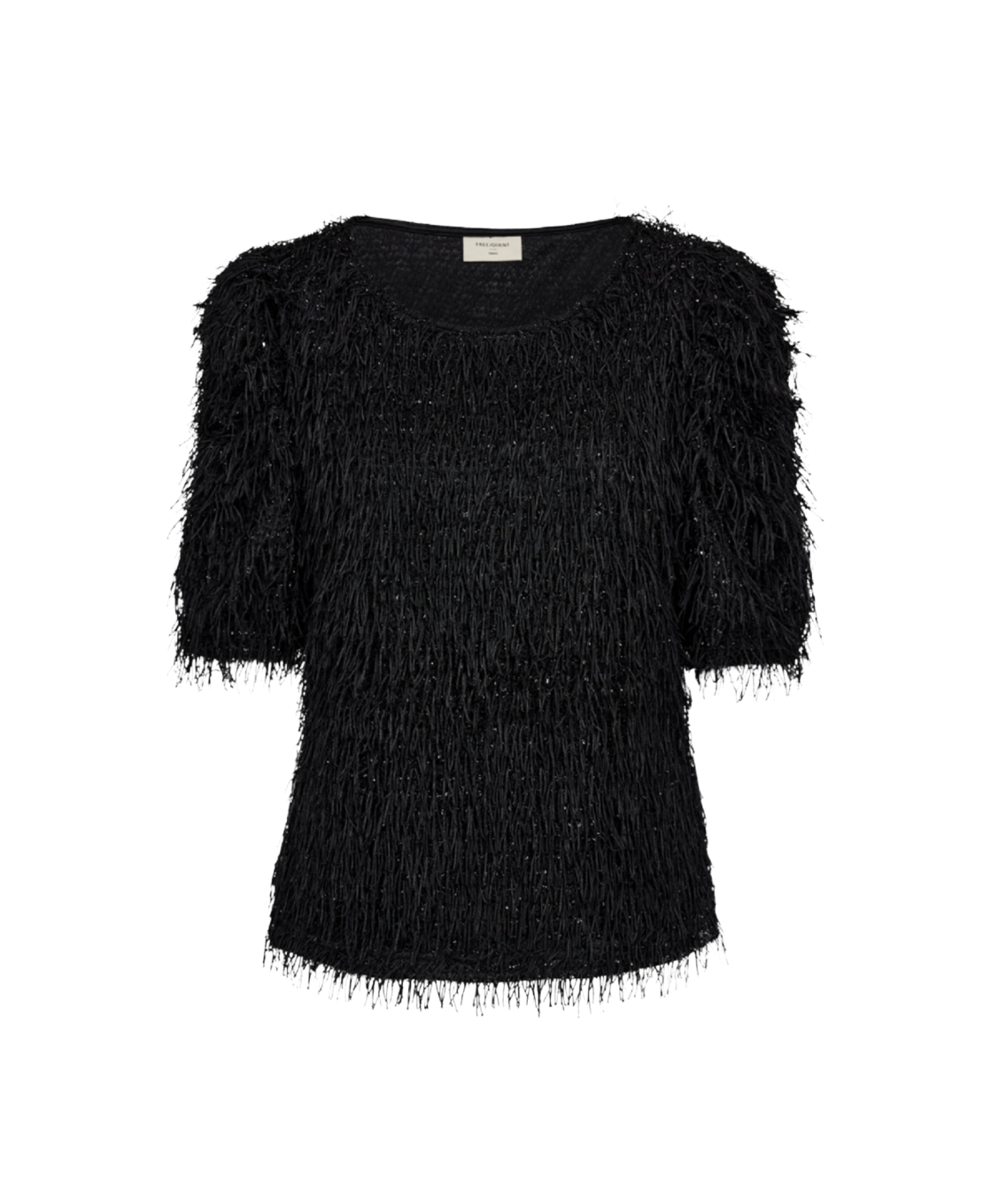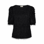 De Fq marlin Fringe top van Freequent is een elegante top met opvallende franjes en subtiele glans. De luchtige stof en pofmouwen zorgen voor een moderne, feestelijke uitstraling. Perfect voor een stijlvolle avondlook.