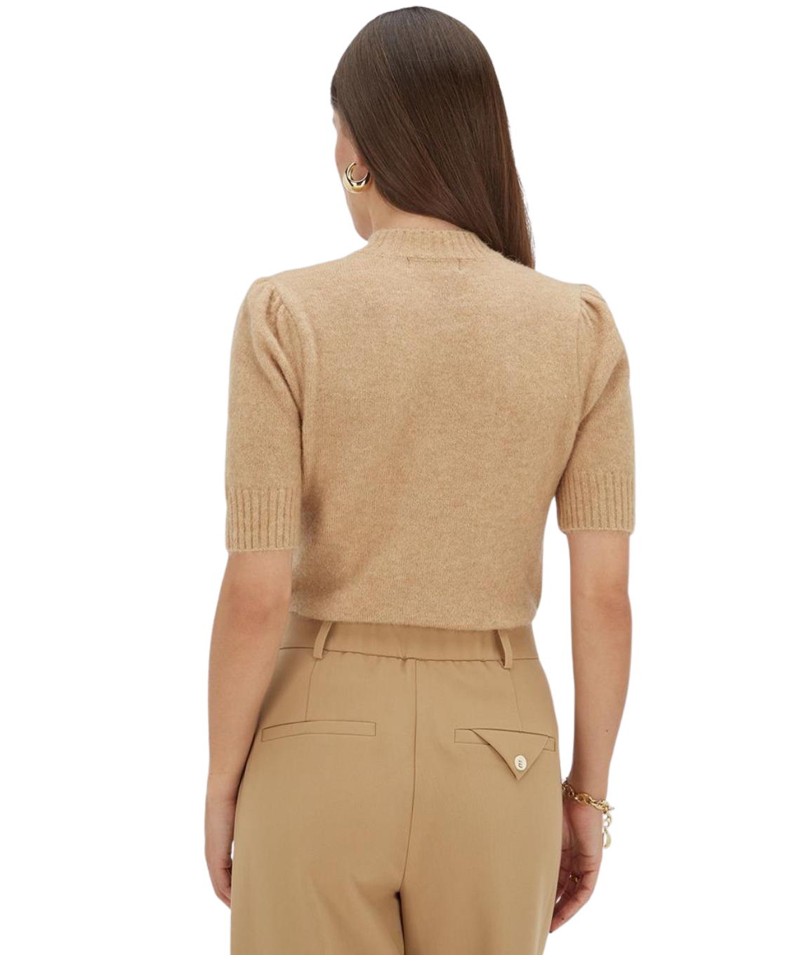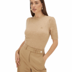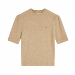 De JOSH V Franka dames top in de kleur Light Brown Melange combineert elegantie met comfort. De fijngebreide trui met korte mouwen is gemaakt van een zachte wolmix en stretch, en kriebelt niet. Aan de voorkant is de top verrijkt met een goudkleurig JOSH V monogram logo, een subtiele finishing touch. Draag de knitwear top met een jeans voor een casual look of combineer met een rok voor een meer geklede outfit.