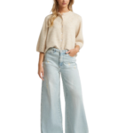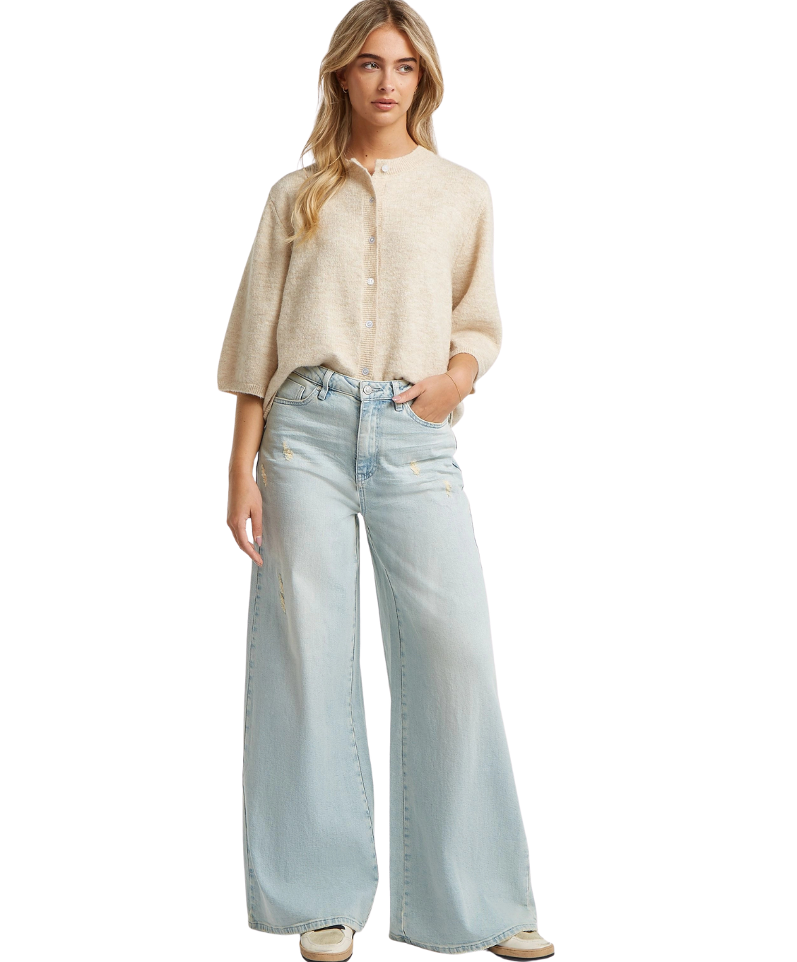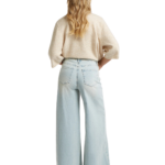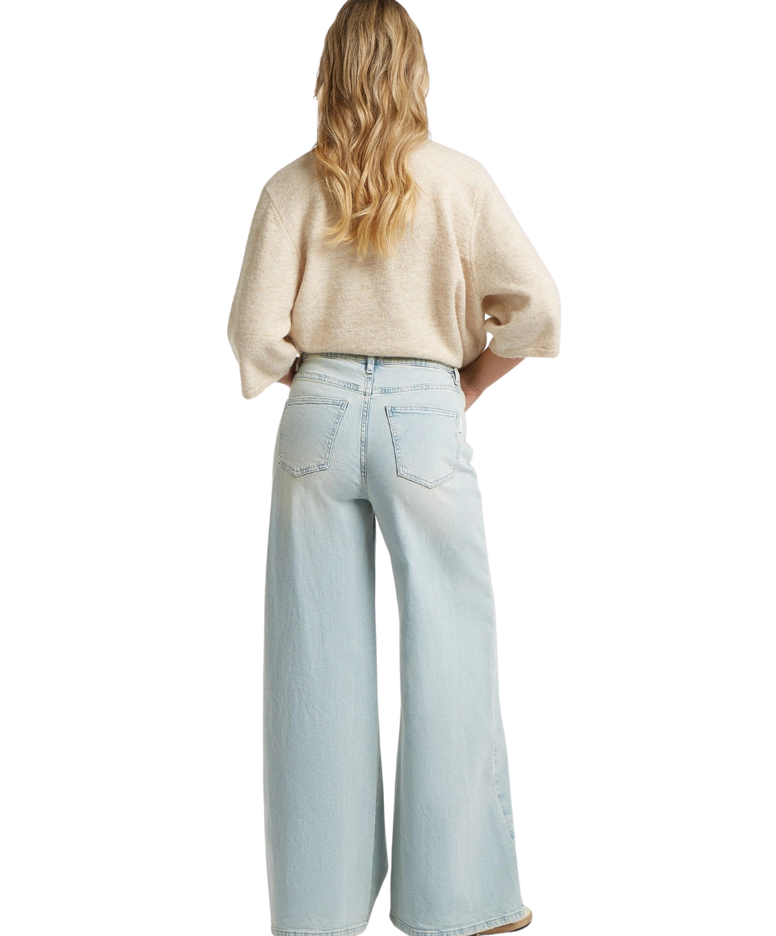 Vintage lichtblauwe wide fit jeans met wijde broekspijpen voor dames.