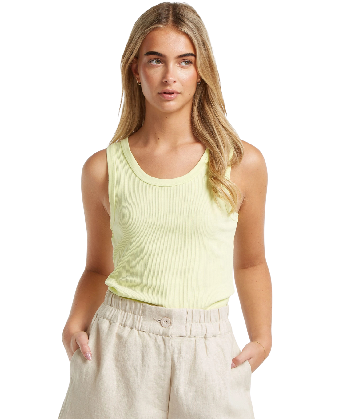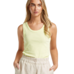 Mouwloze dames top gemaakt van geribd katoen. De Jada top heeft een aangesloten fit, ronde hals en is uitgevoerd in het lime geel. Beschikbaar in diverse tinten.