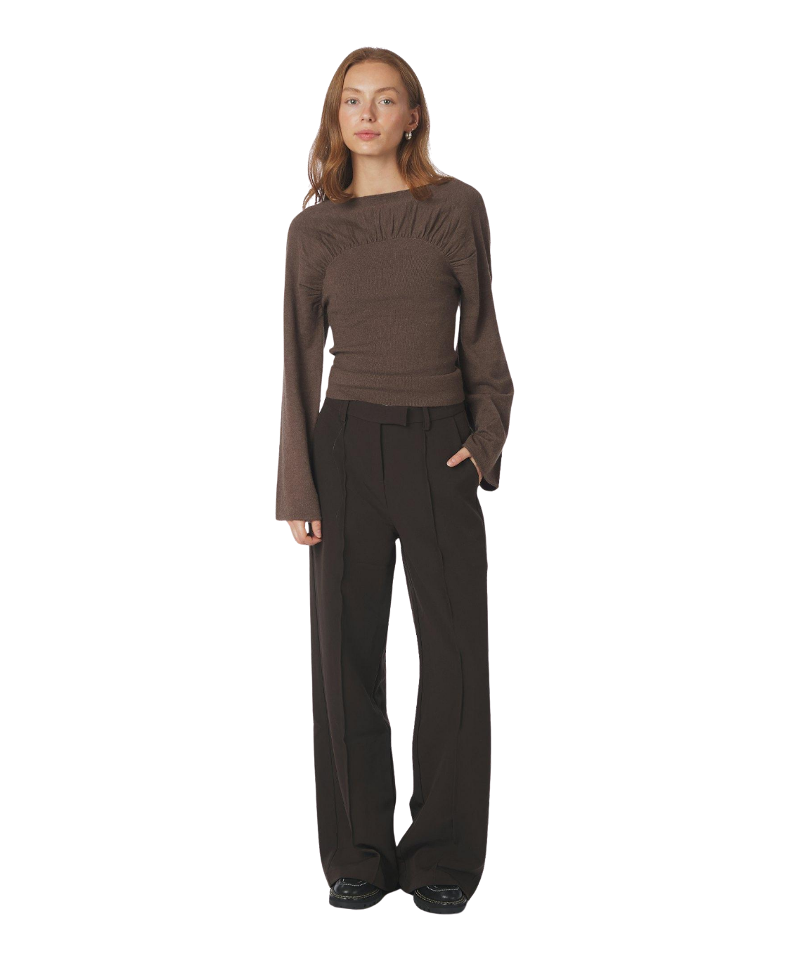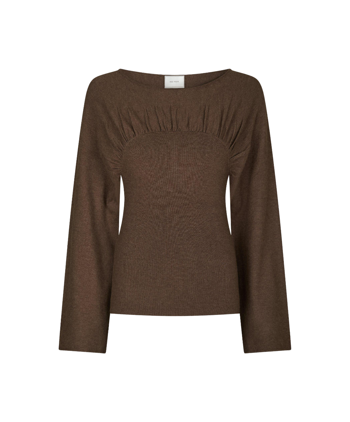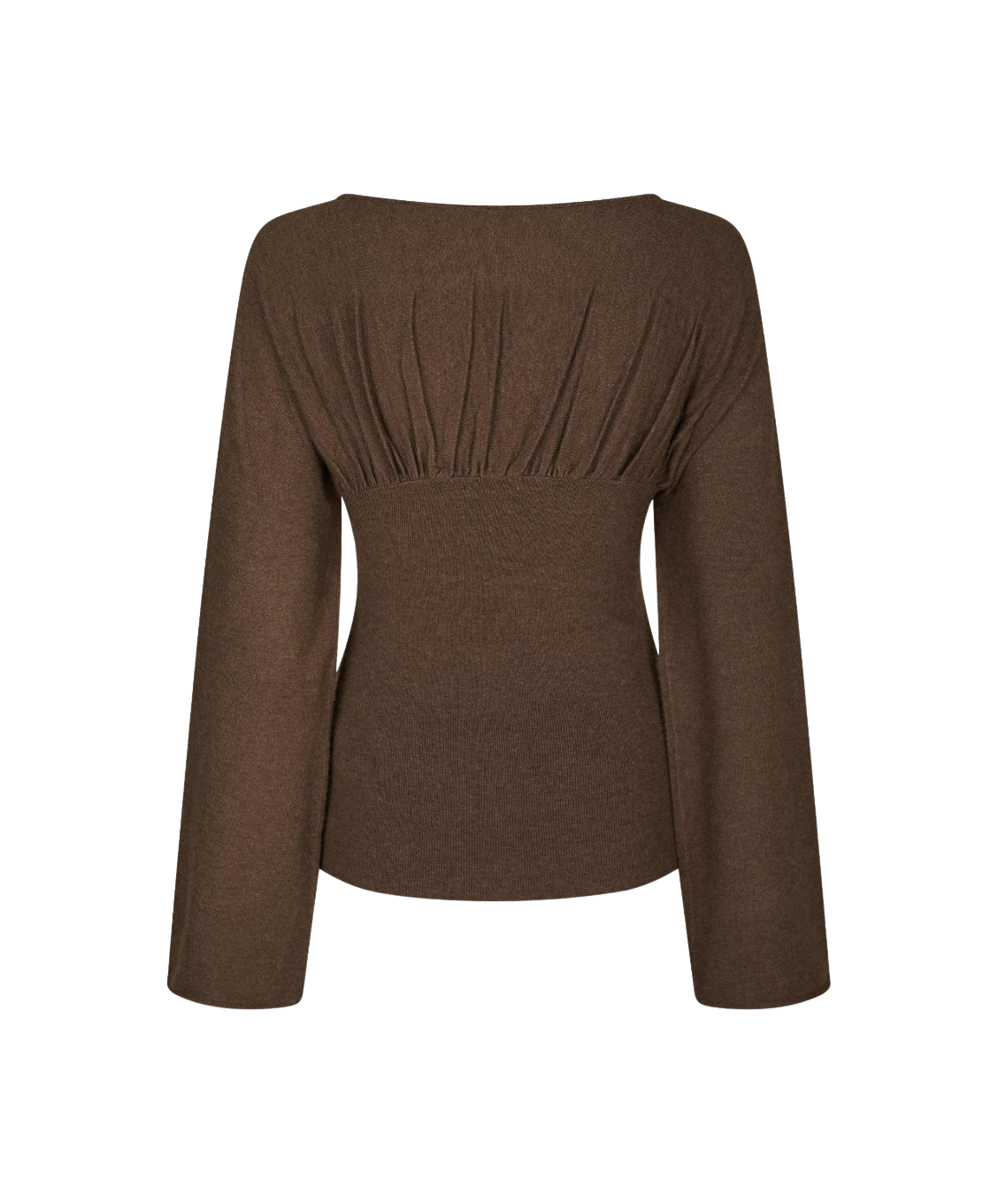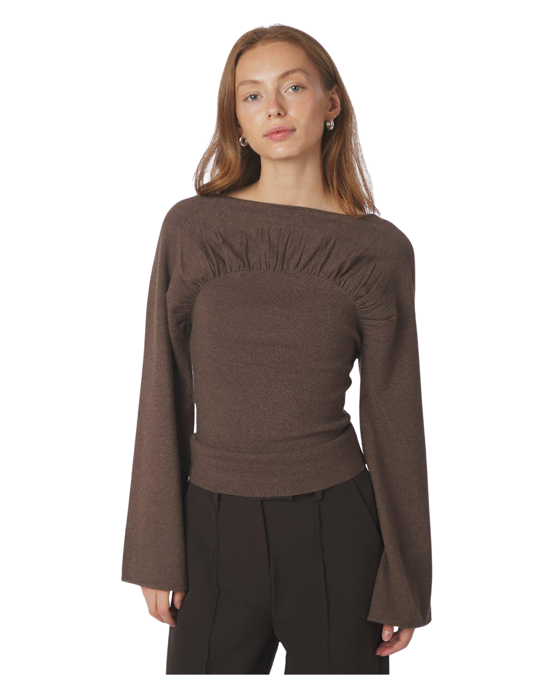 Deze top heeft wijde mouwen en een verfijnd rimpeldetail op de borst en rug, waardoor het item een elegante vorm en een luxe look krijgt. De zachte knitkwaliteit zorgt voor optimaal draagcomfort — perfect voor zowel een casual-chique outfit als een warme winterse layering look.