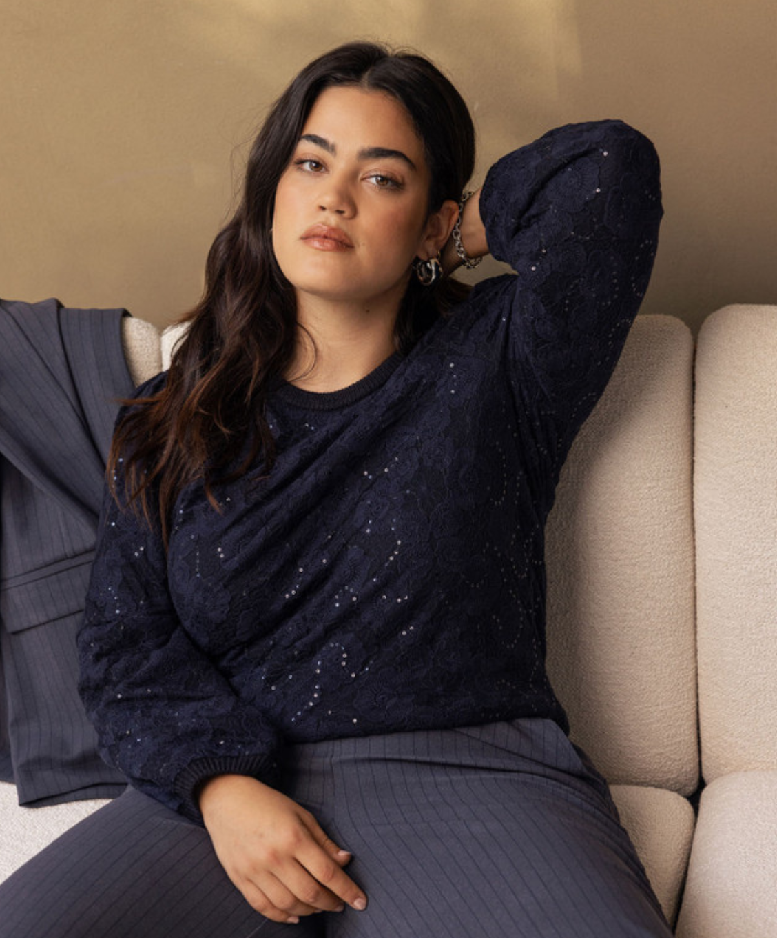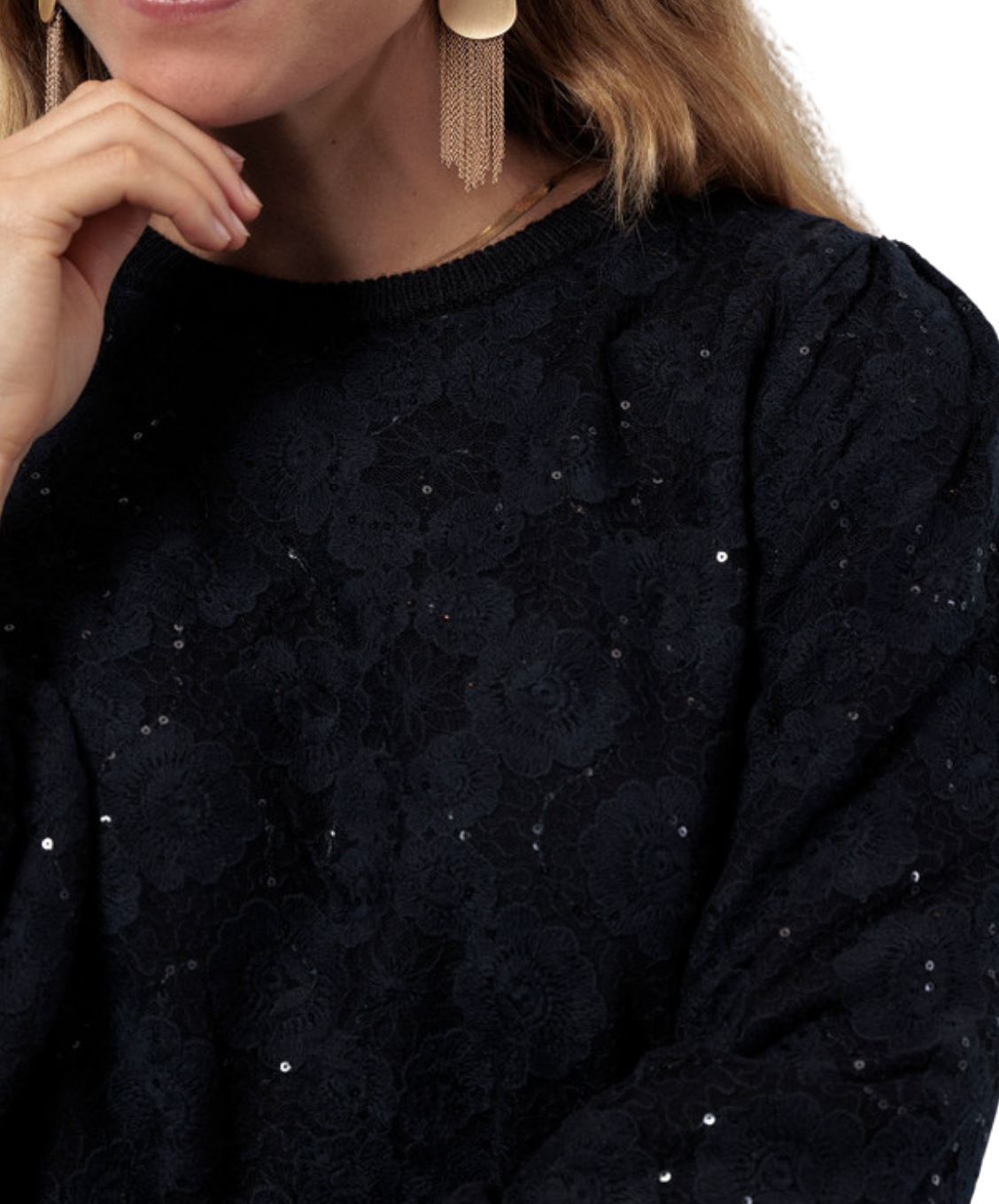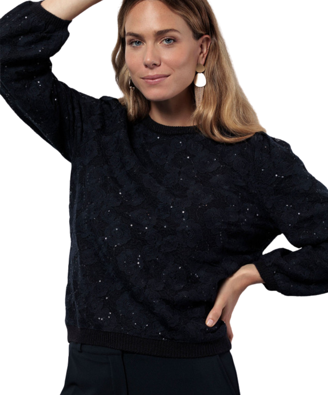 De Lica lace pullover van Studio Anneloes is een feestelijke knit met een vrouwelijke twist. De combinatie van een zachte basis en een kanten toplaag met pailletten zorgt voor een rijk en verrassend effect.