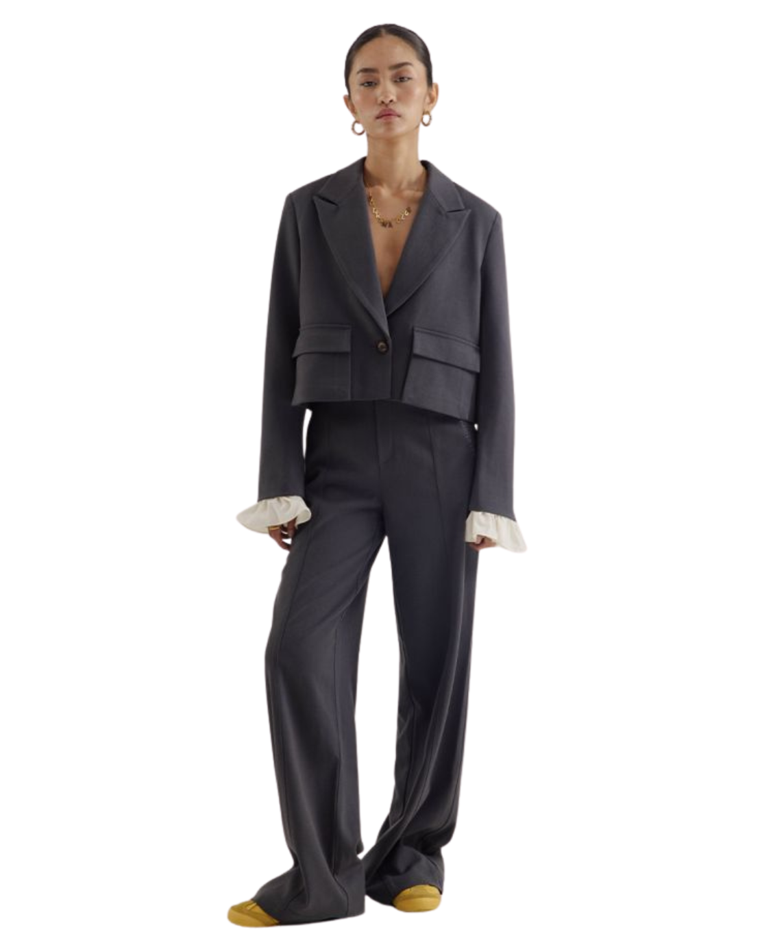 Grey, but never boring. De LILIAN pants in grijs combineren stijl en comfort. Dankzij de wolblend voelen ze luxe aan, terwijl de rechte fit en lichte stretch een perfecte pasvorm creëren. De witte tailleband geeft een speels effect toe aan de broek. Ideaal voor werk of avond. Combineer samen met de IVY blazer.