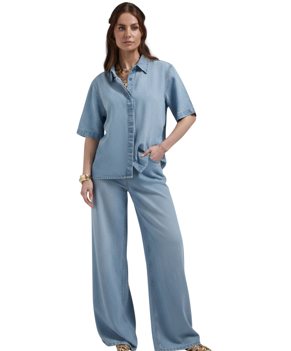 De Liv jeans is een 5-pocket loose-fit model. Vanaf de heupen loopt de broek wijd uit naar beneden. De mooie wassing en de trendy wide-leg pasvorm maken deze denim een echte must-have voor dit seizoen!