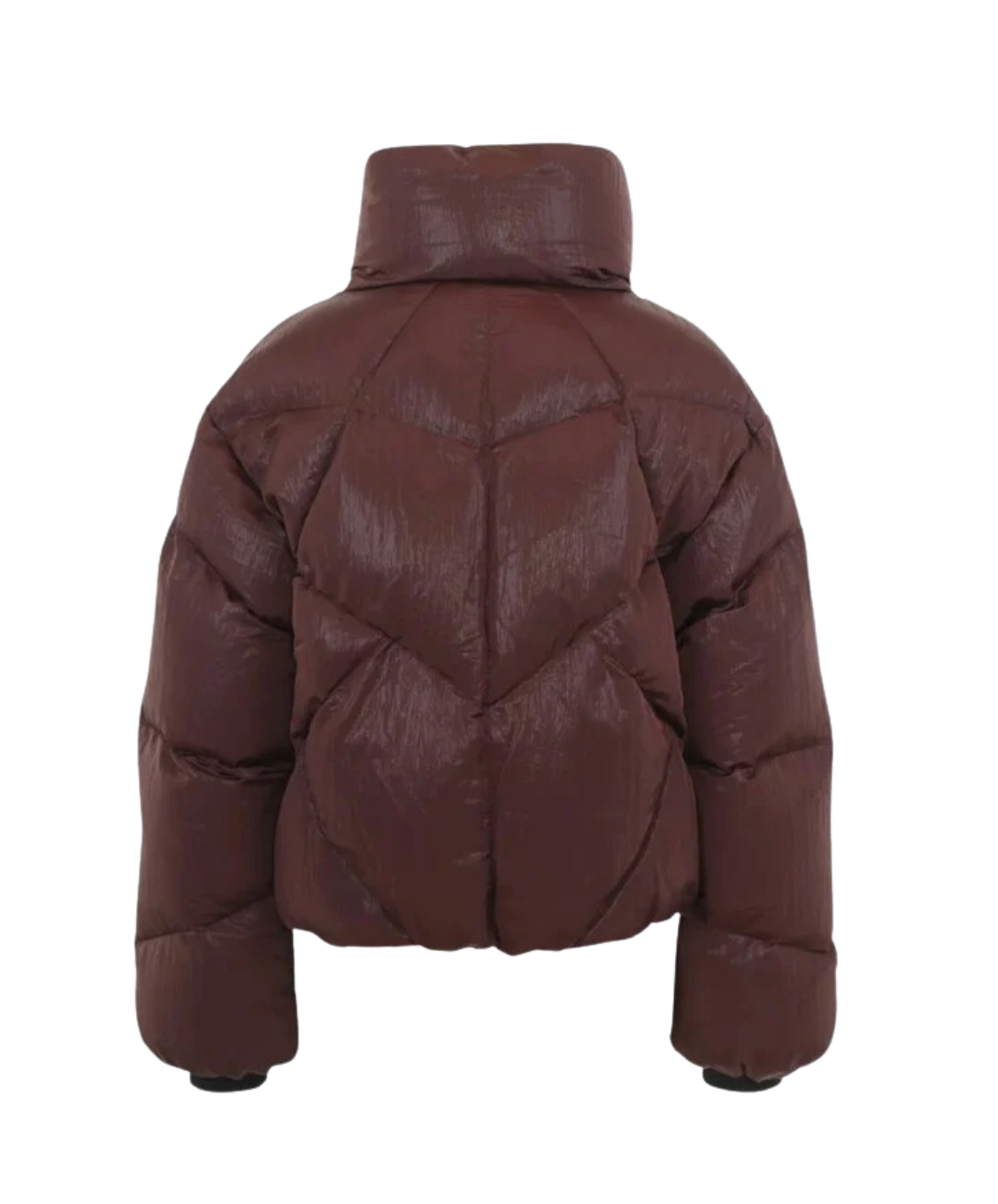 De Nebula Short Puffer Jacket van Krakatau is een warme, gewatteerde jas in een diepe bordeauxrode kleur. Het item heeft een korte, gewatteerde pasvorm die tot op de heup valt en is voorzien van een hoge kraag voor extra warmte. De jas heeft een ritssluiting, twee steekzakken aan de zijkant, een verborgen ritssluiting op de borst en een binnenzak.