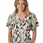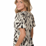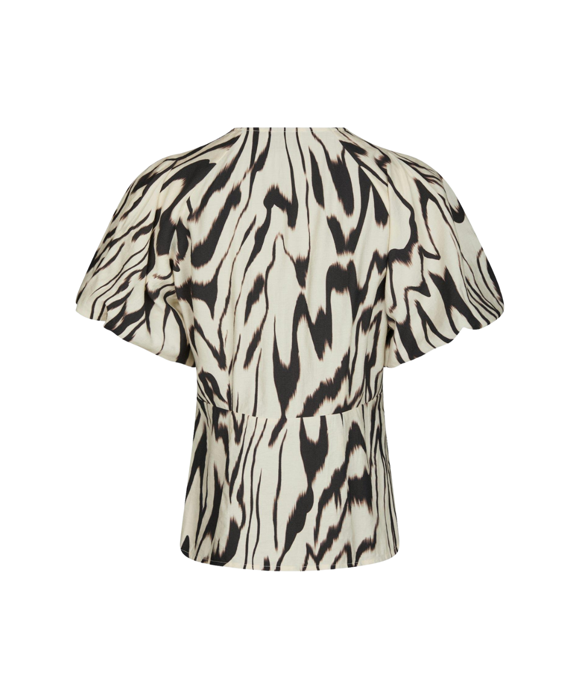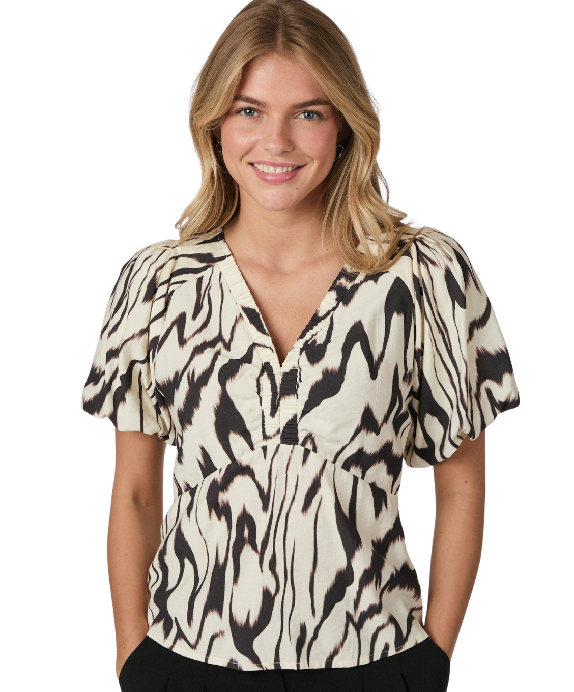 Lichte blouse in een soepelvallende, bedrukte kwaliteit. Voorzien van mouwen tot net boven de elleboog en een blinde ritssluiting voor een clean afgewerkte look. Perfect voor een verfijnde en comfortabele outfit.