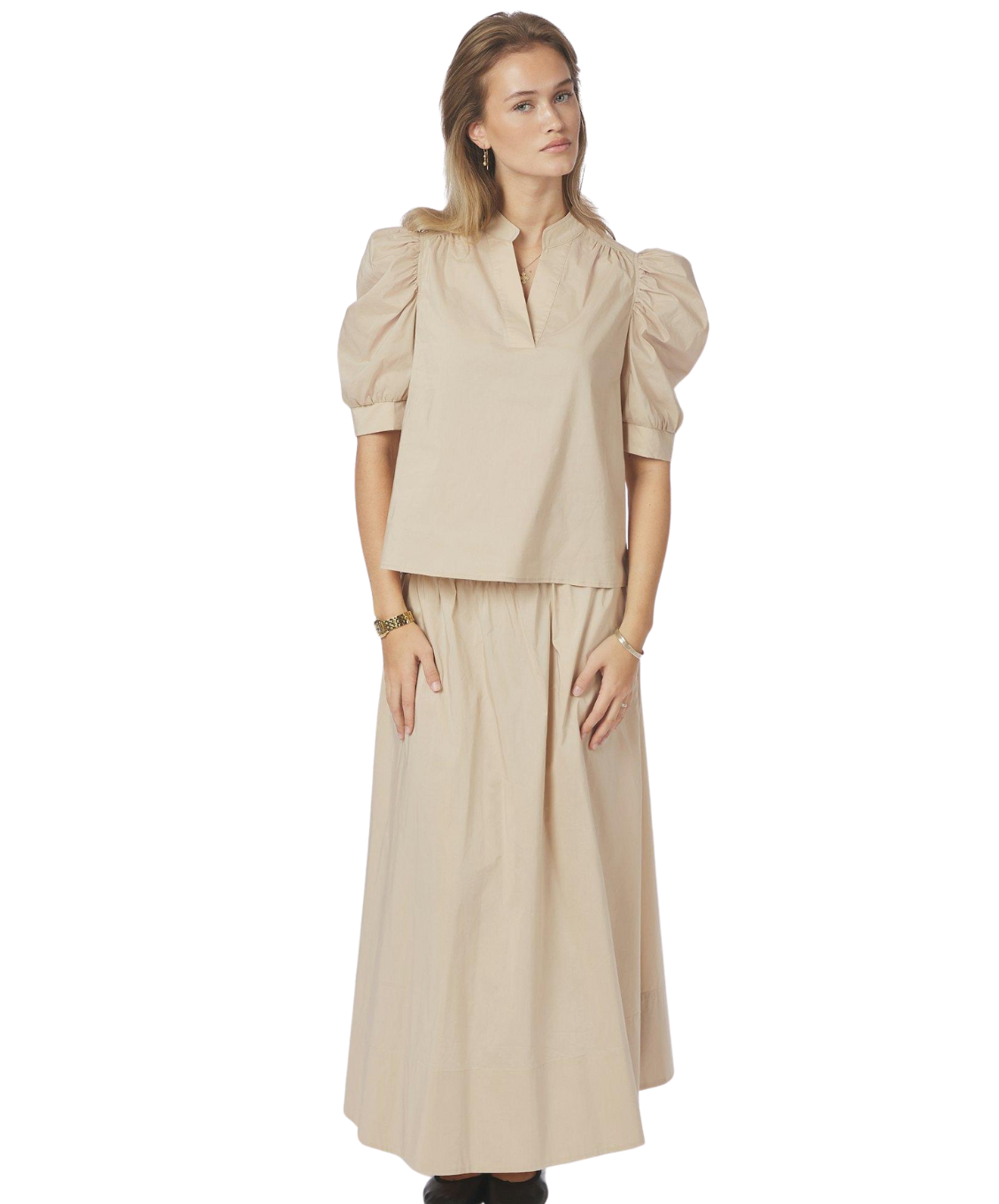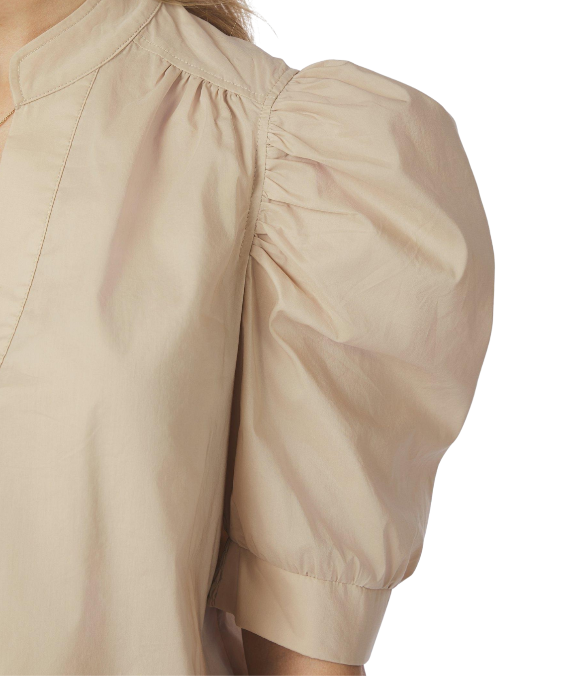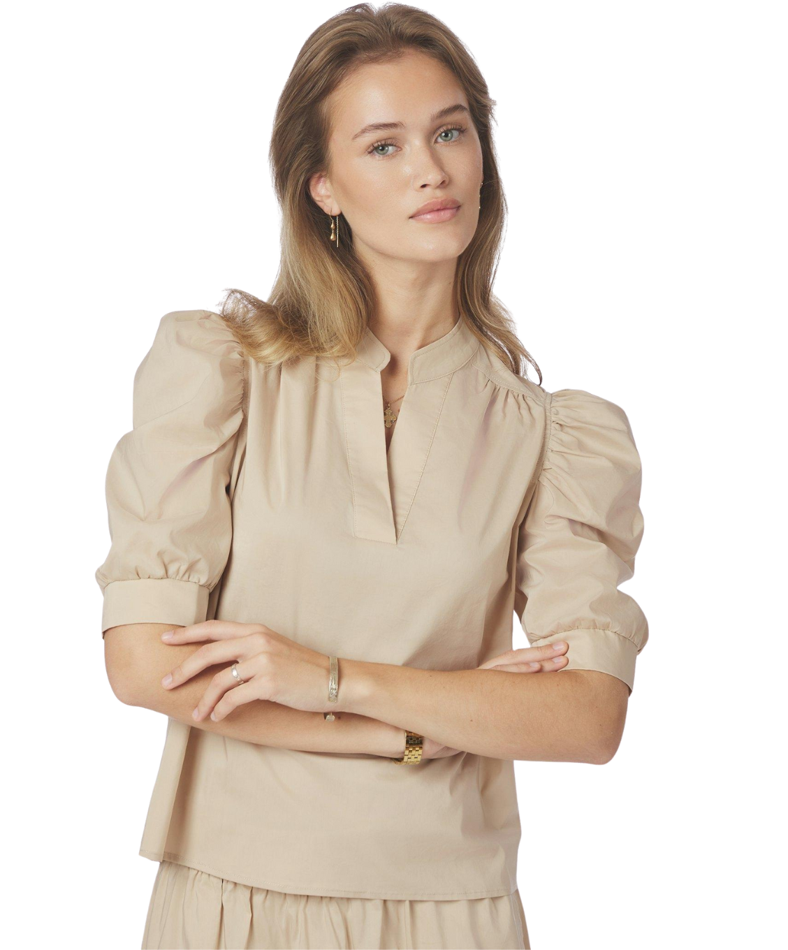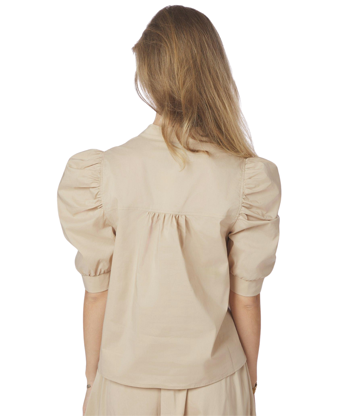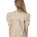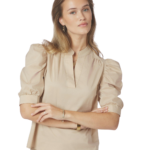 Deze blouse is een perfecte combinatie van elegantie en draagcomfort. Gemaakt van een mooie poplin kwaliteit die fris en soepel aanvoelt. De knopenlijst aan de voorkant en de pofmouwen geven de blouse een vrouwelijke uitstraling, terwijl de decoratieve stiksels zorgen voor een verfijnde finishing touch. Een veelzijdig item dat je moeiteloos zowel chic als casual draagt.