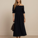 Deze donkerblauwe jurk is een tijdloze toevoeging aan je garderobe. Donkerblauw straalt rust en klasse uit en laat zich moeiteloos combineren met zowel neutrale tinten als krachtige kleuren. Draag haar met wit of beige voor een frisse look, of voeg een accentkleur toe zoals rood of groen voor extra contrast.