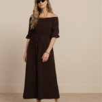 Deze bruine jurk straalt warmte en verfijning uit. De diepe bruine tint geeft je look een luxe en rustige uitstraling en is makkelijk te combineren met andere kleuren. Draag haar met lichte tinten zoals beige of off-white voor een zachte, frisse look, of kies voor ton-sur-ton met andere bruintinten voor een stijlvol geheel.