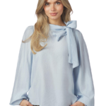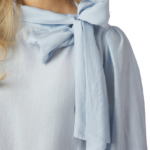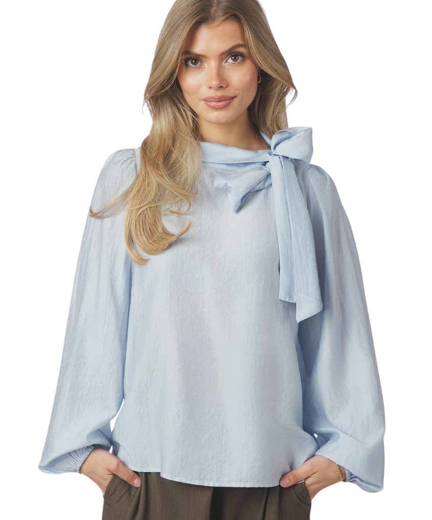 Deze blouse straalt een moeiteloze elegantie uit. Het strikdetail in de halslijn geeft een speelse, vrouwelijke touch, terwijl de casual pasvorm zorgt voor een comfortabele look. De lange mouwen met elastiek in de manchetten creëren een subtiel volume en maken deze blouse perfect voor zowel alledaagse als geklede outfits.