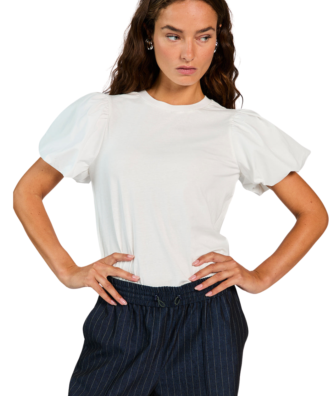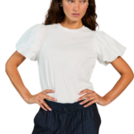 De Sofia Top is een basic T-shirt met een verrassend detail: de volumineuze pofmouwen zorgen voor een vrouwelijke twist. Het model heeft een rechte fit en is gemaakt van een katoen voor extra draagcomfort. Combineer met de Esila broek voor een look die minimalistisch is, maar toch opvalt.