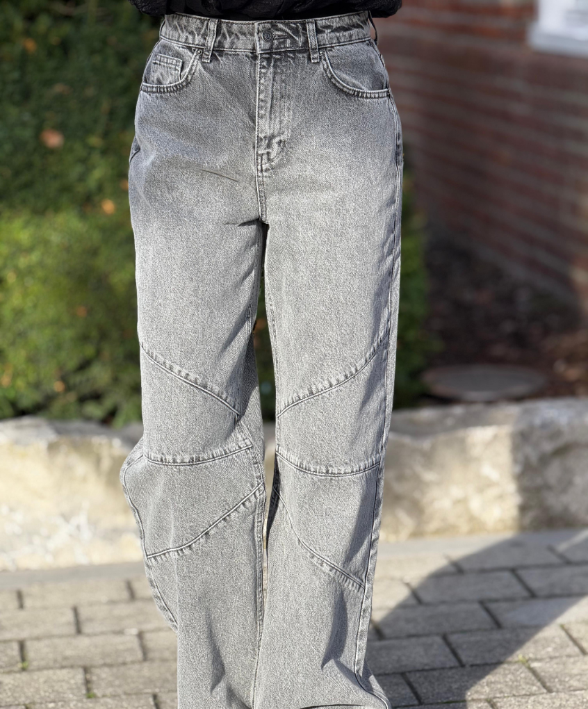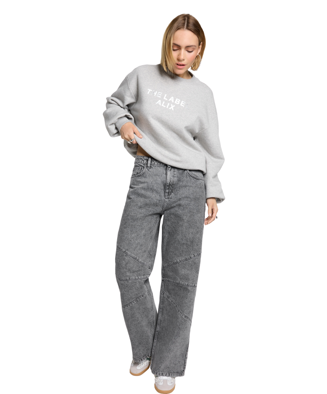 Deze grijze jeans van Alix The Label is dé perfecte mix van stoer en stijlvol. De jeans heeft een relaxed fit met een normale taille en valt mooi recht langs het been. De stoere grijze wassing en de opvallende stiknaden geven de broek een edgy look, terwijl de subtiele ‘THE LABEL’-print op de achterzakken zorgt voor die typische Alix-touch.
