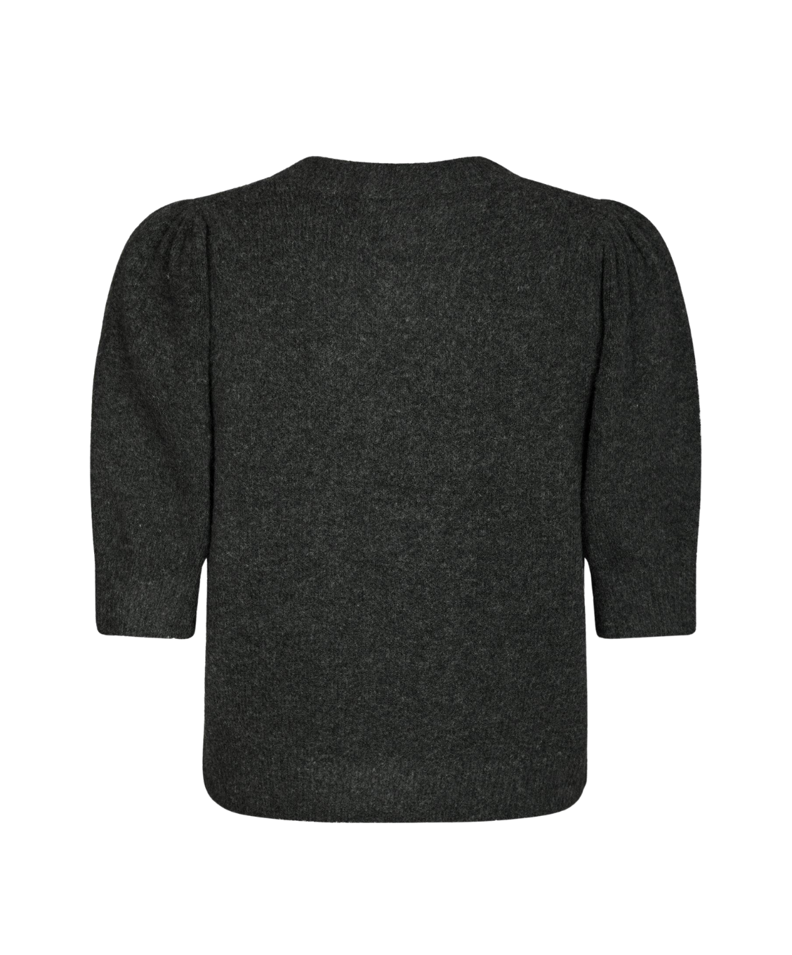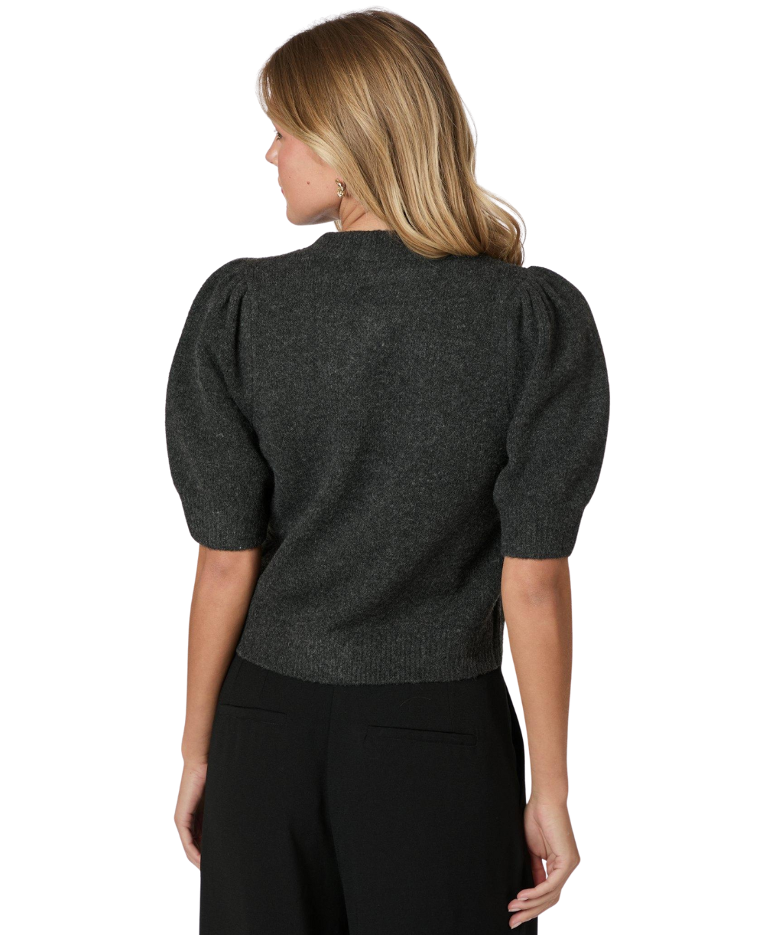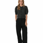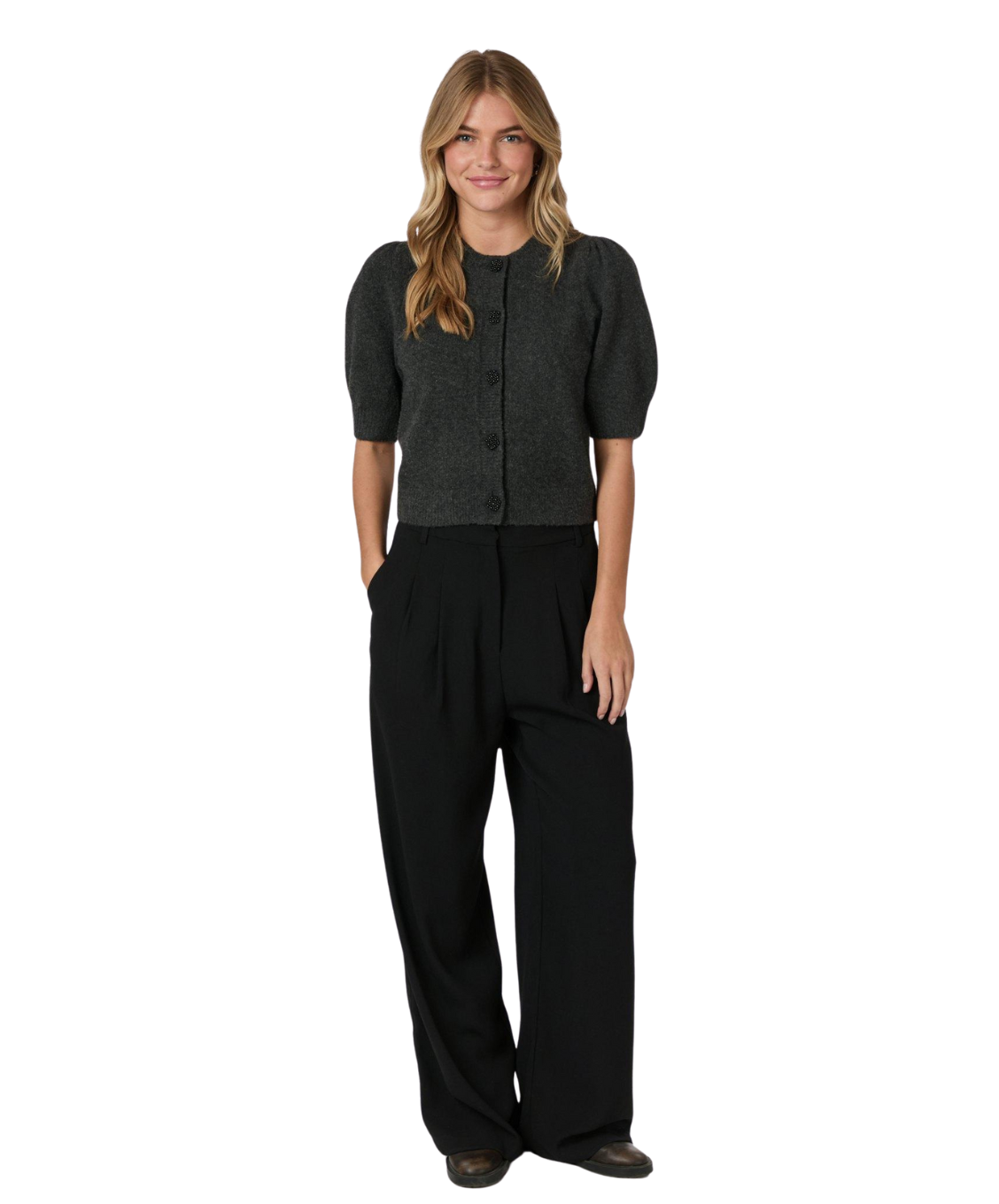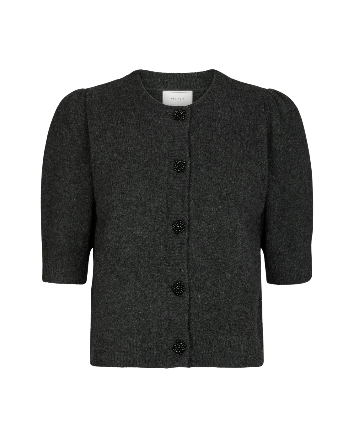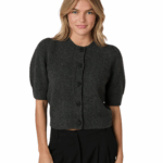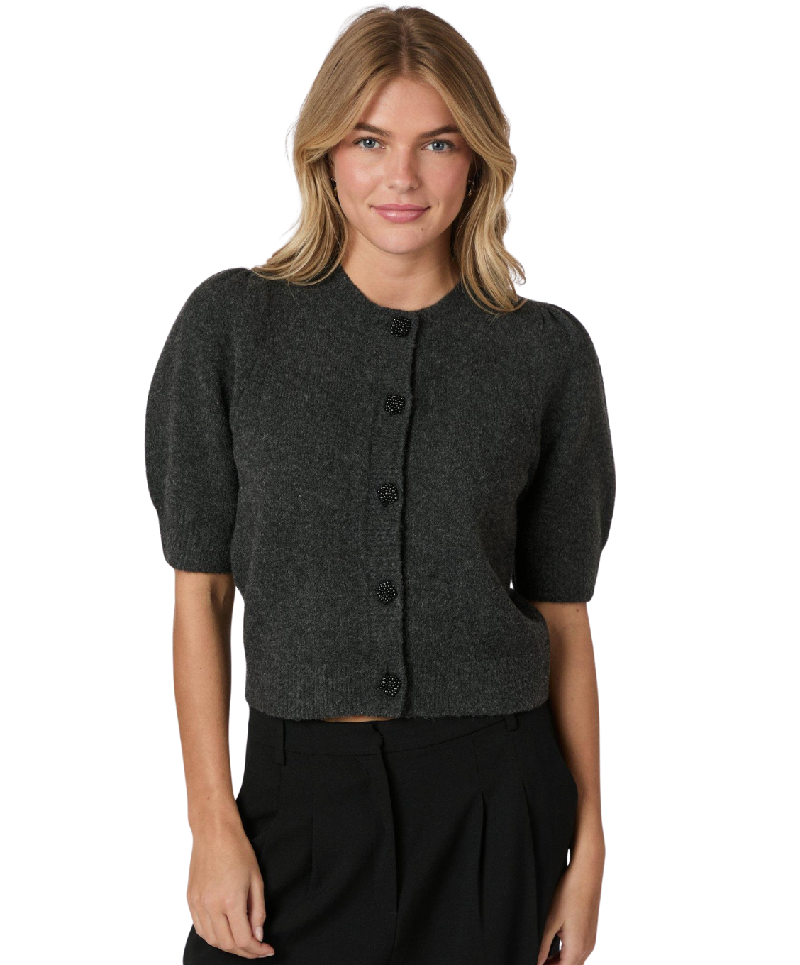 Schattig gebreid vestje met korte mouwen en kleine decoratieve knoopjes aan de voorkant. Dit vestje combineert eenvoud met een vrouwelijke uitstraling en is ideaal om zowel los te dragen als over een top.