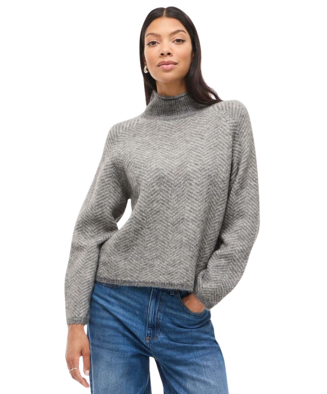 Stijlvolle en comfortabele gebreide trui van zacht stretchmateriaal. Uitgevoerd met lange raglanmouwen en een hoge hals voor een moderne look en een regular fit die mooi valt.